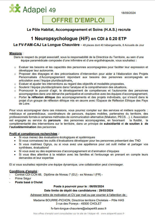 - Vous souhaitez rejoindre nos équipes pour accompagner les personnes en situation de handicap mental ?