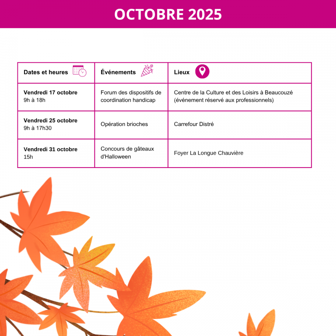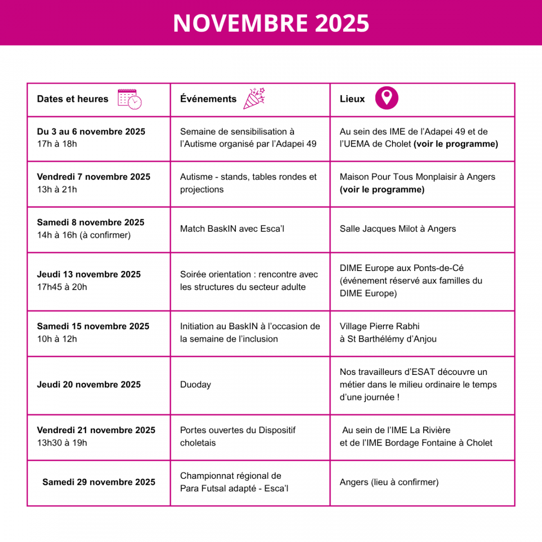 Adapei 49 Actualités Les événements 2025 - 2026 de l'Adapei 49 Partager cette page : Posté le : 14/10/2025 Tags : #Association #Évènements Catégories : Les événements 2025 - 2026 de l'Adapei 49 en cours de rédaction
