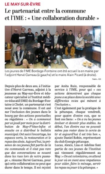 Adapei 49 Actualités PARTENARIAT MAIRIE DU MAY SUR EVRE Partager cette page : Posté le : 19/12/2025 Catégories : PARTENARIAT MAIRIE DU MAY SUR EVRE