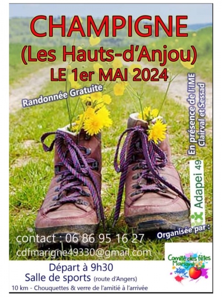 Le 1 et Mai se déroulera à Champigné, une randonnée pédestre organisée par le comité des fêtes de Marigné.