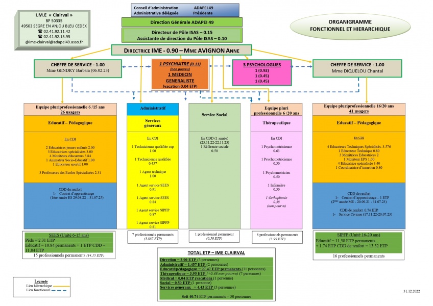 Organigramme IME CLAIRVAL SEGRE (au 31.12.22)