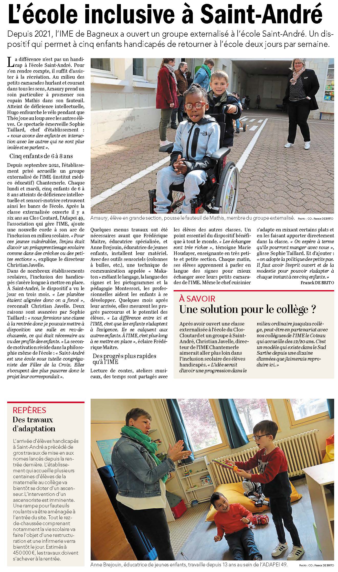 Adapei 49 Actualités L’inclusion scolaire s’invite à l’école Saint-André Partager cette page : Posté le : 06/05/2022 Tags : #IME Chantemerle #inclusion Catégories : L’inclusion scolaire s’invite à l’école Saint-André